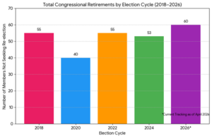- In just four months, the number of retirement announcements rose by 32%, increasing from 50 to 66. (Legislative Retirements, 2026)